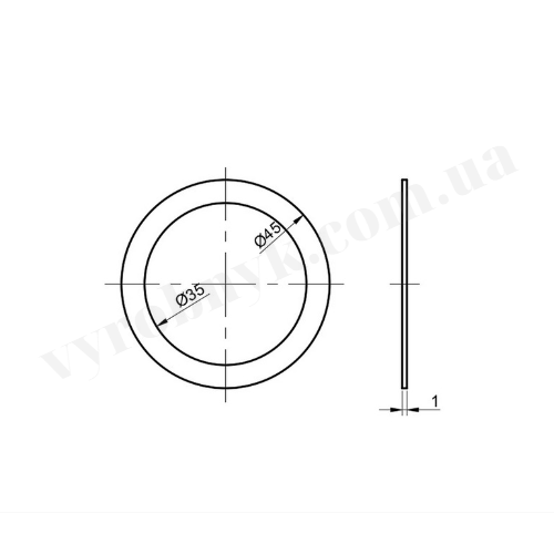 Внутрішній діаметр(d) – 35 мм, зовнішній(D) – 45 мм, товщина (S) – 1 мм