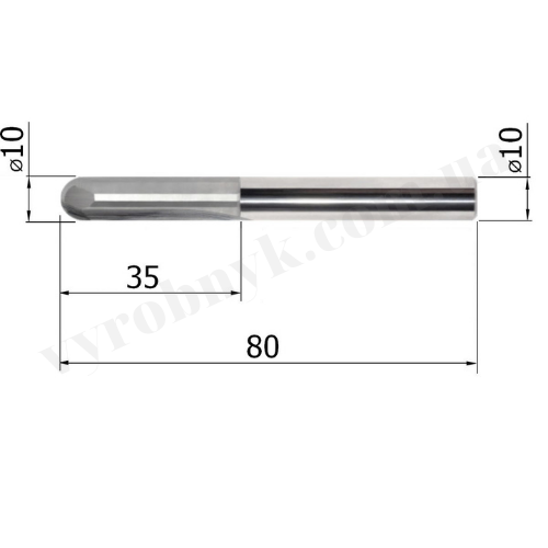 Фреза двозуба прямозуба сферична D10 d10 L80 l35 R5 (E35801010)