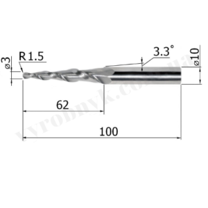 Фреза спіральна двозуба конусна сферична D10 d3 L100 l62 R1.5 A3.3 (G62100310)