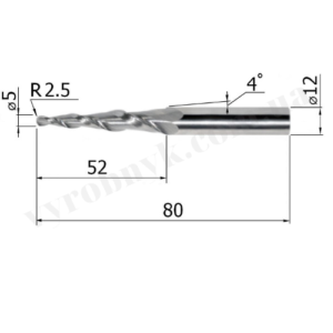 Фреза спіральна двозуба конусна сферична D12 d5 L80 l52 R2.5 A4 (G5280512)