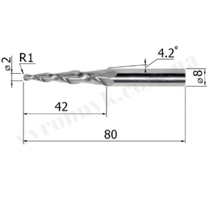 Фреза спіральна двозуба конусна сферична D8 d2 L80 l42 R1 A4.2 (G428028)