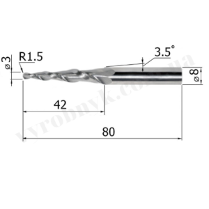 Фреза спіральна двозуба конусна сферична D8 d3 L80 l42 R1.5 A3.5 (G428038)