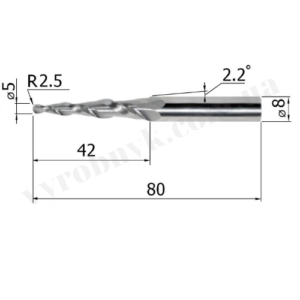 Фреза спіральна двозуба конусна сферична D8 d5 L80 l42 R2.5 A2.2 (G428058)