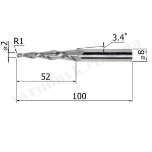 Фреза спіральна двозуба конусна сферична D8 d2 L100 l52 R1 A3.4 (G5210028)