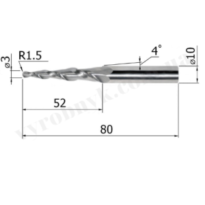 Фреза спіральна двозуба конусна сферична D10 d3 L80 l52 R1.5 A4 (G5280310)
