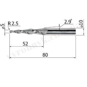 Фреза спіральна двозуба конусна сферична D10 d5 L80 l52 R2.5 A2.9 (G5280510)