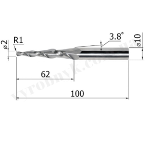 Фреза спіральна двозуба конусна сферична D10 d2 L100 l62 R1 A3.8 (G62100210)